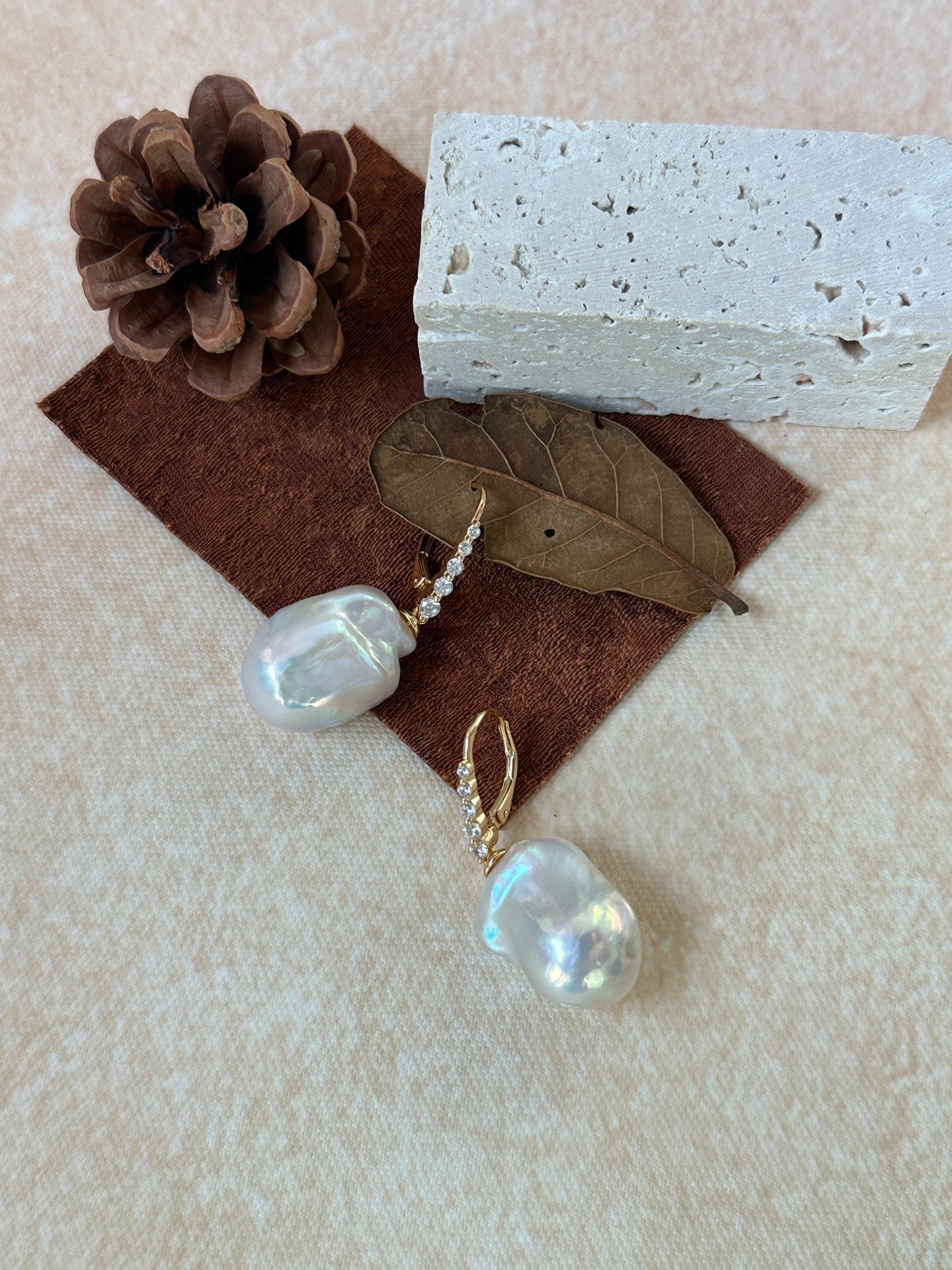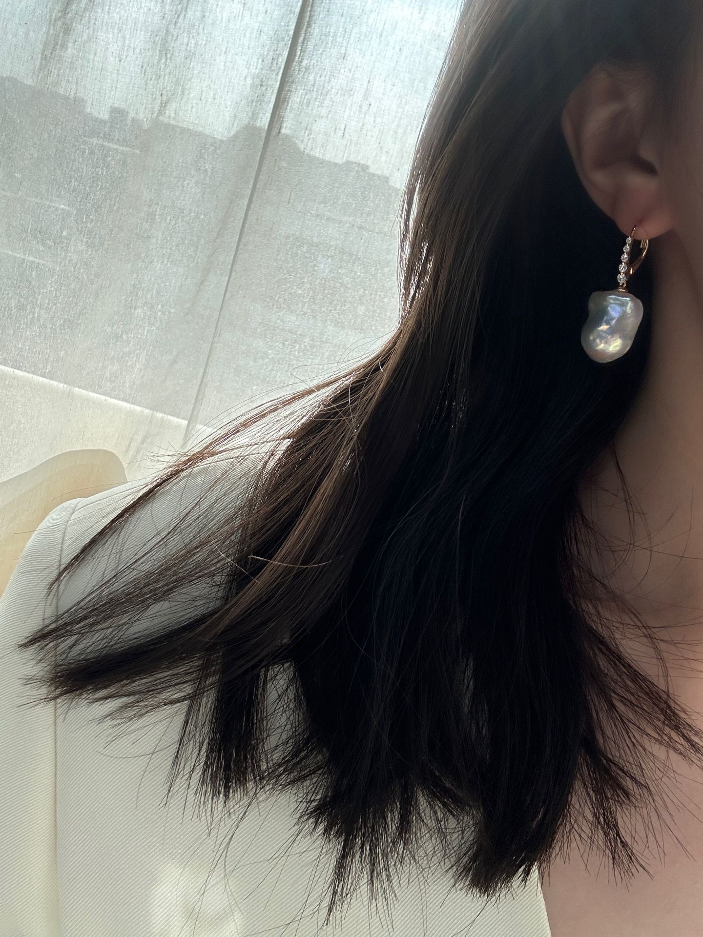 The sparkling linear zircon details add a touch of glamorous sparkle, contrasting beautifully with the soft, iridescent sheen of the oversized baroque pearls to create a striking and sophisticated silhouette. Lightweight and comfortable to wear, these earrings are a versatile statement piece perfect for daily wear, dates, parties, weddings, formal occasions or gifting, effortlessly elevating any look with a blend of delicate sparkle and timeless pearl elegance.