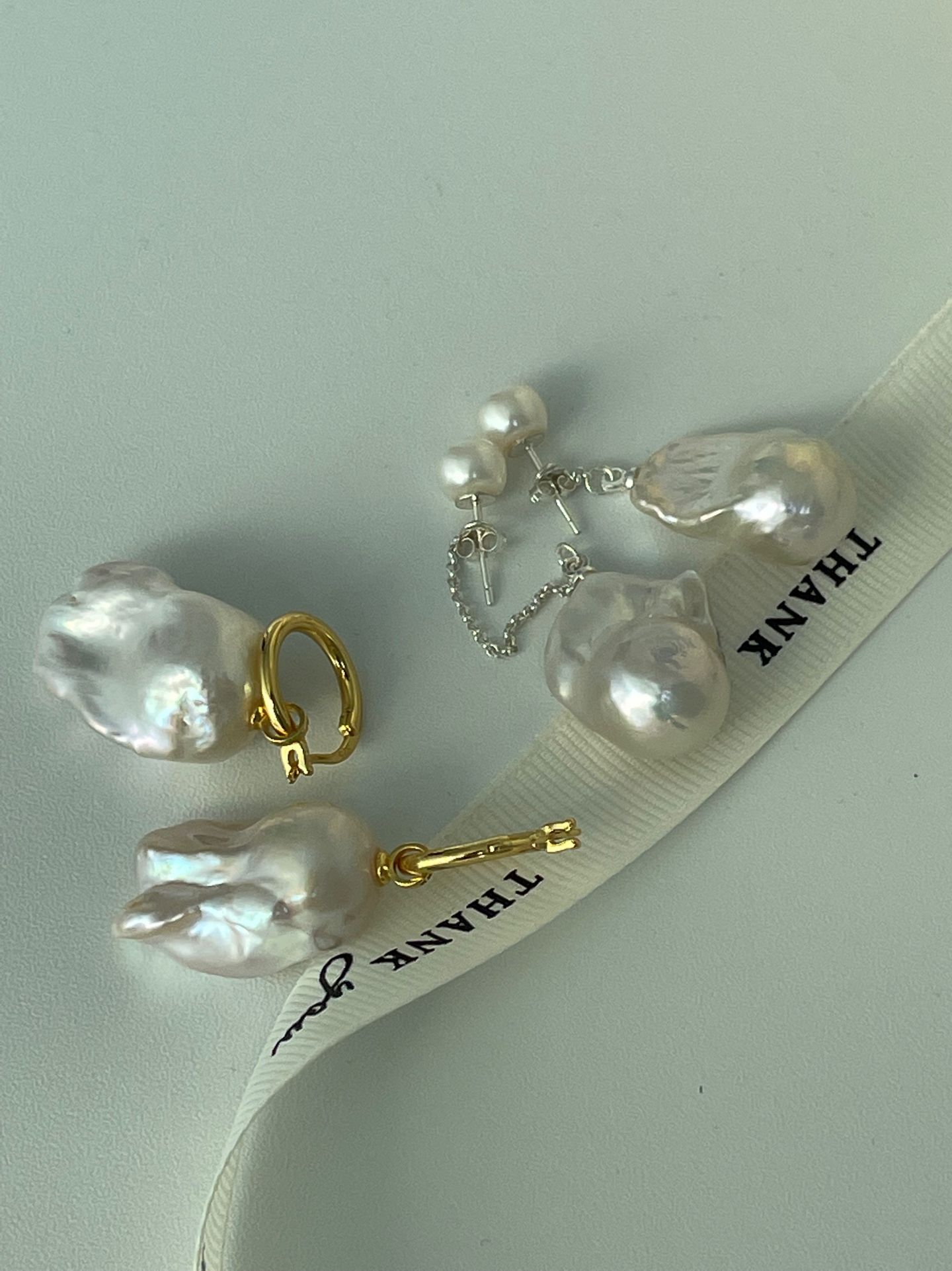 These exquisite drop earrings feature stunning large baroque pearls with unique, irregular natural shapes and a soft, iridescent luster, showcasing the inherent artistic charm of natural pearls. Crafted with high-quality silver plated with 18K gold for the hoop earring bases and all metal components, they deliver a luxurious, long-lasting shine and durable construction, perfectly complementing the organic beauty of the baroque pearls.