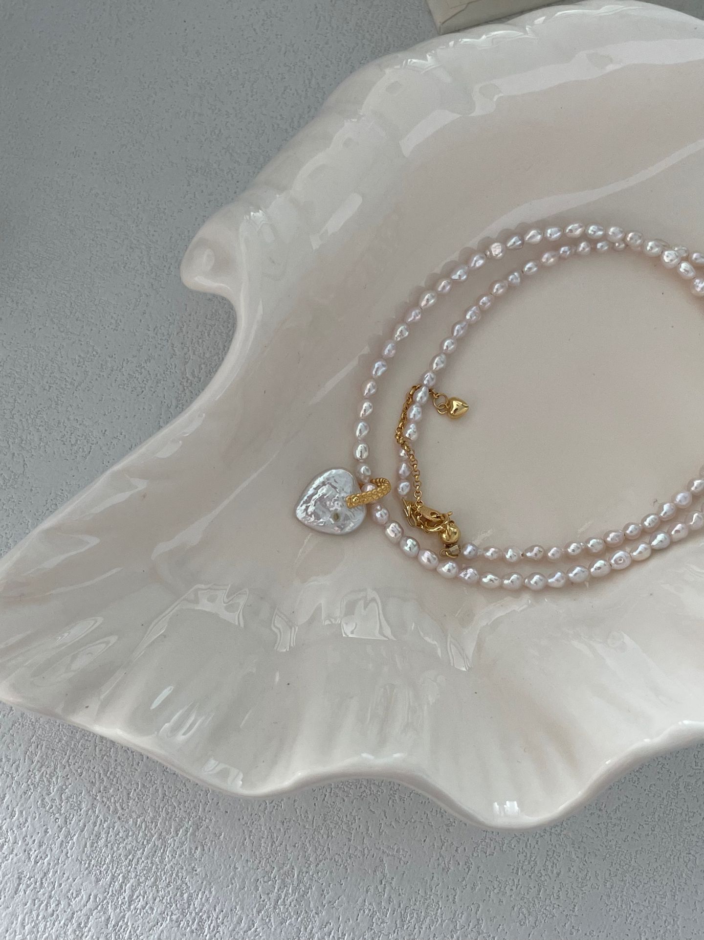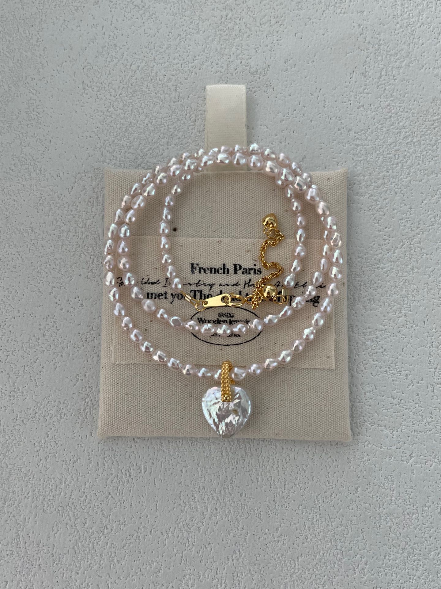 At its center, a sparkling, clear heart-shaped crystal pendant adds a touch of whimsical glamour, catching the light beautifully for subtle, eye-catching shine. The warm, durable 18K gold plating ensures long-lasting luster, while the soft pink pearls bring a gentle, ethereal vibe to any look.