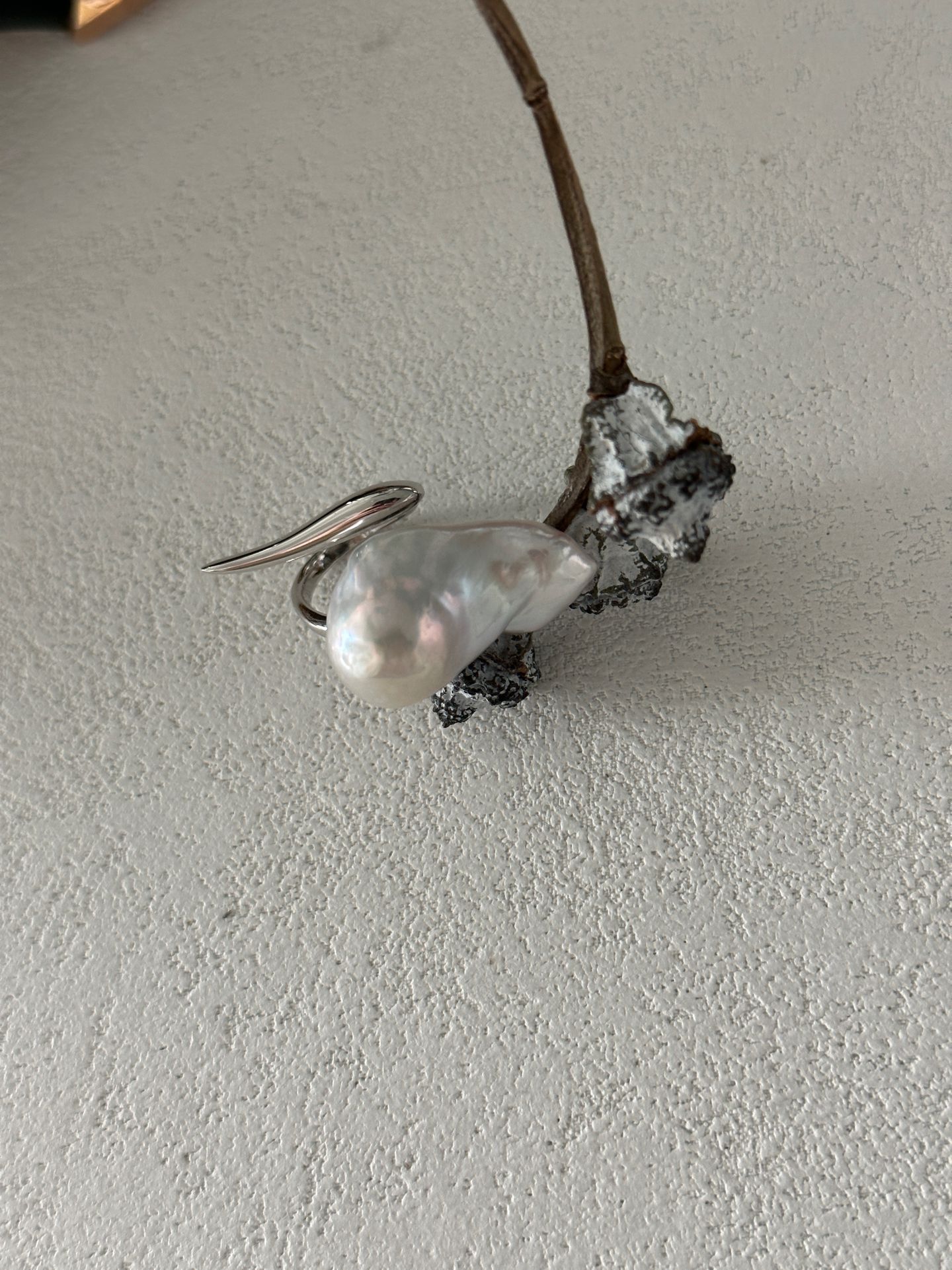 The edgy dagger-shaped metal setting creates a striking contrast with the soft, organic beauty of the oversized baroque pearl, blending modern avant-garde style with the timeless allure of natural pearls. The unique silhouette makes it a standout statement piece, perfect for adding a touch of personality and elegance to daily wear, dates, parties, casual outings or gifting. Each ring is unique due to the natural characteristics of the baroque pearl, offering an exclusive and artistic touch to your jewelry collection.
