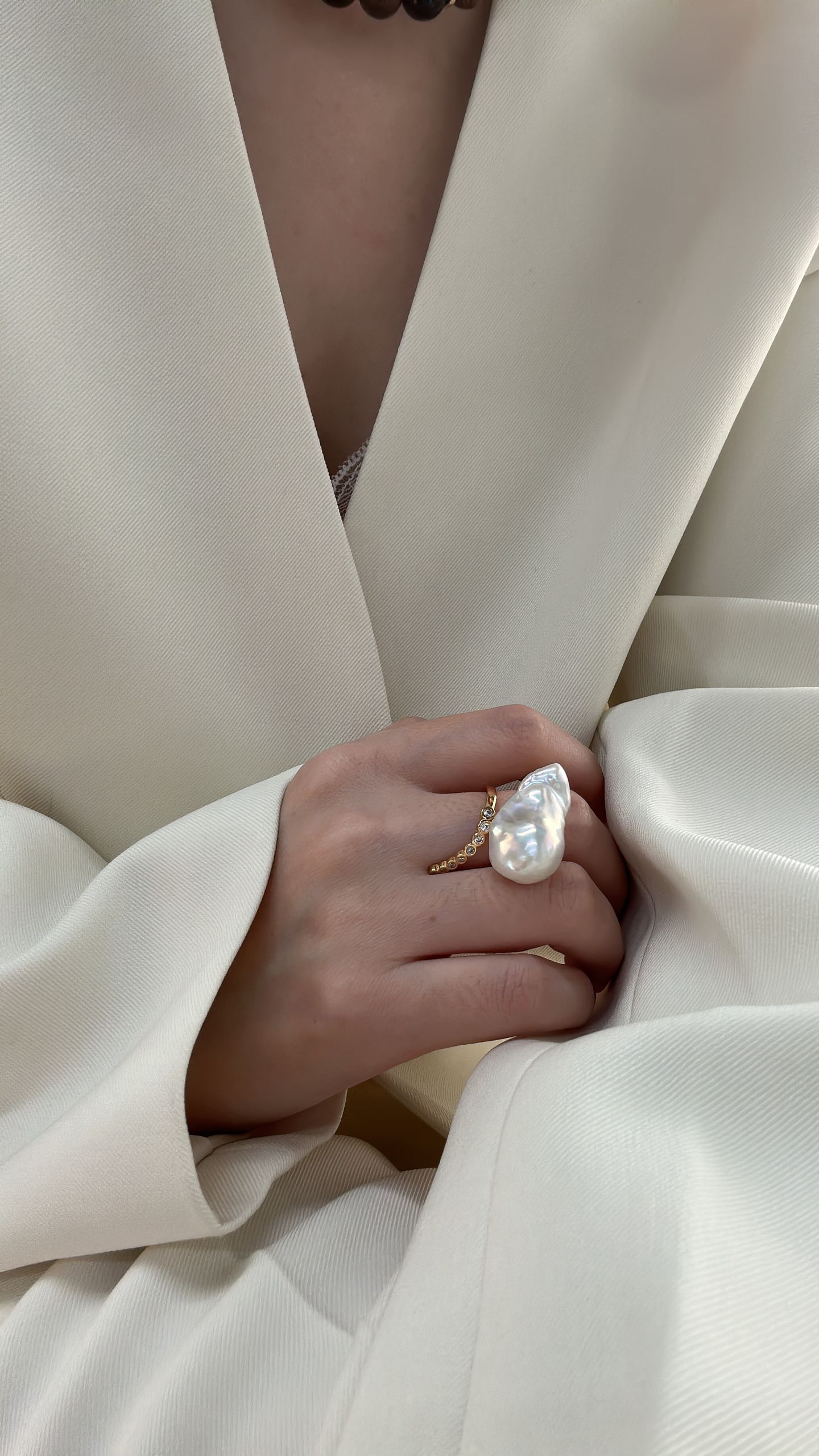 Versatile for daily wear, dates, parties, formal occasions or gifting, this ring combines the timeless allure of large baroque pearls with the refined sparkle of zirconia, making it a distinctive and luxurious addition to any jewelry collection.
